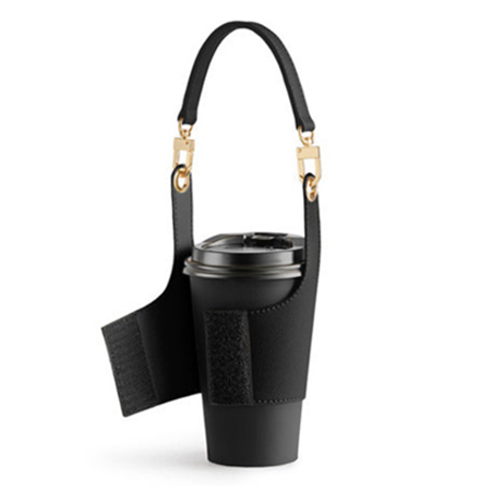 這款皮革手提飲料杯套採用柔韌耐用材質,能穩固包覆常見手搖杯與咖啡杯,減少滑落、燙手與水珠沾濕的困擾。搭配金屬扣環與質感手把,提拿舒適、造型加分,讓飲料也成為穿搭的一部分。