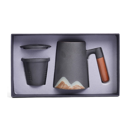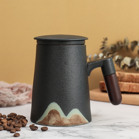 採用高溫燒製粗陶材質,表面呈現自然岩紋觸感,質樸沉穩、富有手作溫度。特殊設計的茶水分離結構,搭配濾孔內杯,只需將茶葉放入內膽、注水浸泡後提起,即可快速分離茶葉與茶湯,輕鬆掌控濃淡,避免久泡回苦,讓風味更加純粹順口。杯身搭配山景釉彩,彷彿將靜謐山嶺握於掌心,展現低調而獨特的東方美學。木質手把隔熱好握,不燙手也不滑手,無論居家、辦公或送禮皆相當合適,是喜愛品茶與質感生活者不可錯過的日常茶器。