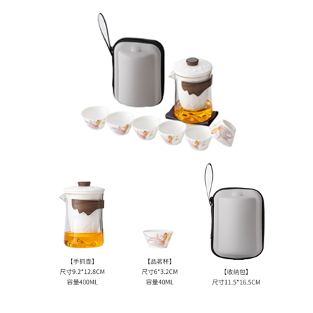 為熱愛茶香與旅行的你而生,以輕巧實用為設計核心,將泡茶的儀式感隨身帶著走。手抓壺採高透耐熱玻璃製成,400ml 容量剛好適合一人品茗或好友分享,溫潤木質點綴杯蓋與壺身,呈現自然山林意象。搭配 40ml 品茗小杯,細緻線條與暖色圖紋,使每一口茶都更加迷人。