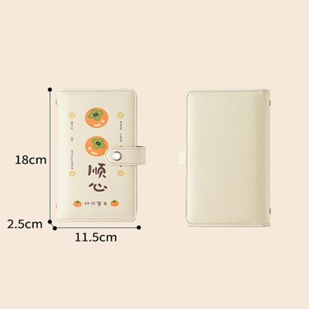 以溫潤奶油色搭配療癒系小柿子圖樣,並印上「順心」字樣,象徵事事順利、財務平安。採用細緻仿皮革材質,手感柔軟、耐磨耐用,外型簡約卻不失可愛。內層多層設計搭配防滑夾層,可整齊收納存摺、現金、收據、發票、票據與各式卡片,一本就能搞定日常整理。翻扣磁釦設計,開闔滑順、收納更安心。