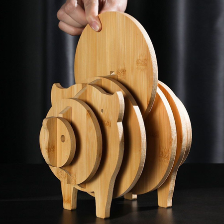 細膩竹紋與溫潤質感搭配可愛動物造型設計,讓實用桌墊瞬間變成療癒擺飾。立體層片結構不僅造型吸睛,也具備良好的隔熱、防燙效果,可用於熱鍋、茶壺、咖啡杯等日常器皿,保護桌面不受高溫損傷。
