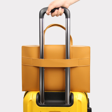 背面貼心設計行李拉桿固定帶,可直接套在行李箱拉桿上,出差、旅行時穩固不滑落,解放雙手更輕鬆。手提與拉桿兩用設計,一包兩用,無論是通勤、開會、出國、洽公都相當實用,是一款兼具機能與美感的高質感多用途包款。