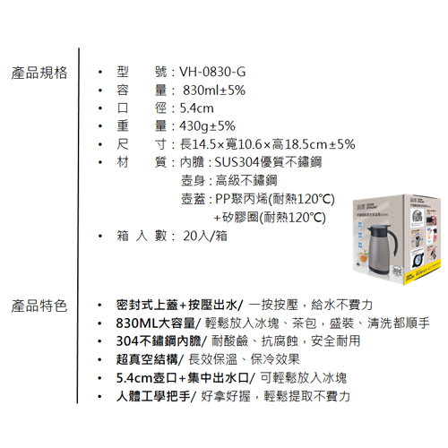 鍋寶 不鏽鋼超真空保溫壺830ML