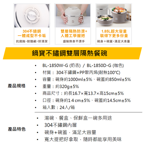 鍋寶 不鏽鋼雙層隔熱餐碗│產品介紹