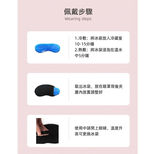 在機能設計上,產品結合冷敷與熱敷雙重使用方式,讓入睡體驗更具變化與實用性。眼罩可作為日常護眼的貼心工具,熱敷時能促進眼周舒緩放鬆,冷敷時則幫助鎮定降溫,帶來清新的眼部SPA感受。透過簡單操作即可享受眼部SPA等級的放鬆體驗,彷彿為疲勞的雙眼進行一場輕鬆的按摩與保養。無論長時間用電腦、滑手機或閱讀後使用,都能有效減輕不適,提升眼周的舒適度與放鬆效果。