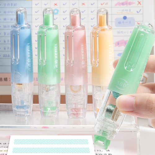 本款點點膠修正帶以高顏值淡彩色系為設計特色,外型清新簡約,兼具實用性與美感,適合日常學習與創作使用。膠帶採用菱形點狀膠設計,出膠均勻細緻,黏貼時不易拉絲或結塊,能牢固貼合紙張表面。即塗即黏、乾淨不髒手,使用後紙面平整俐落,讓修正與黏貼過程更有效率,提升整體使用體驗。