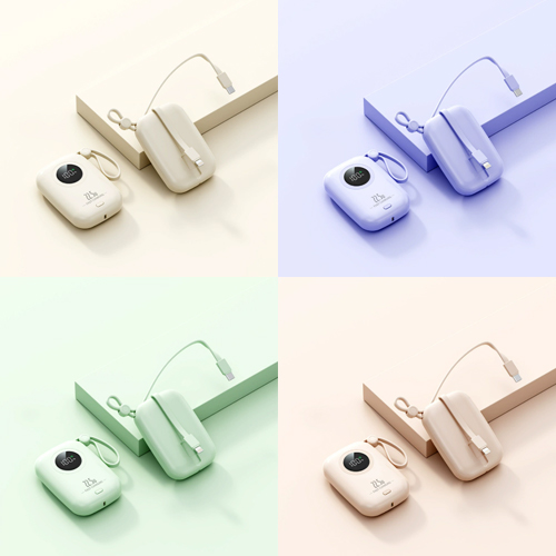 這款多功能行動電源以「極致輕巧」為核心,外型圓潤且色彩繽紛,提供蜜桃粉、豆青色、檸檬黃與慕山紫四款清新色系,完美兼顧時尚美學與便攜需求。機身正面配置高清 LED 數顯螢幕,讓剩餘電力一目了然,徹底告別電量焦慮。特別設計的自帶掛繩不僅方便提掛、防止滑落,更在簡約的幾何線條中融入實用巧思,是日常穿搭與包袋收納中的精緻亮點。