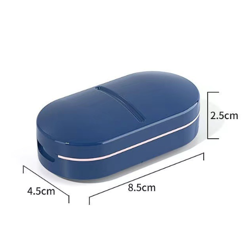在核心機能上,本產品整合了「切藥與收納」雙重功能。頂部配置精準切藥構造,能輕鬆將藥錠切分,解決大顆藥丸難以吞嚥的困擾。內部規劃有分格空間,可用於存放日常維他命或藥品,結構緊密能有效防止藥品受潮或串味。產品尺寸精確為 8.5cm x 4.5cm x 2.5cm,極致纖薄且小巧便攜,能輕鬆放入口袋或隨身小包中,實現易放易取的便利體驗。