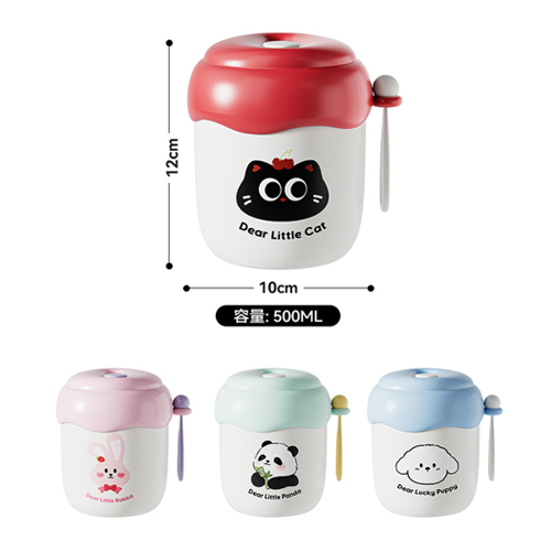 本款萌趣卡通早餐輕食杯以百搭柔和色系結合可愛插畫設計,外型療癒耐看,適合日常使用。容量為 500ml,大小剛好,能輕鬆盛裝燕麥、粥品、湯品或水果點心,滿足早晨與輕食需求。杯身內層採用 304 不鏽鋼製作,安全耐用、不易殘留異味,搭配雙層結構設計,具備良好抗摔表現,日常使用更安心。
