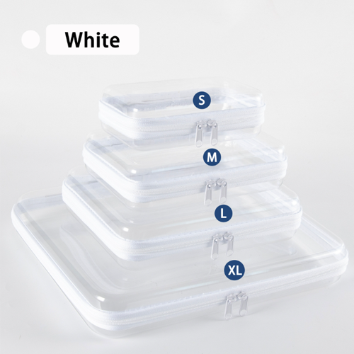 硬盒結構相較軟袋更具保護力,不易擠壓變形,適合收納文件、文具、充電線、化妝品、保養品或旅行隨身小物。拉鍊全包覆設計,移動時不易散落,分類收納整齊有序。PET材質表面好清潔、不易沾污,日常使用依然保持乾淨透亮,實用性與美觀度兼具。