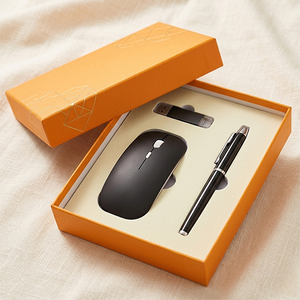 商務辦公三件禮盒組|滑鼠+隨身碟+鋼筆客製化禮品